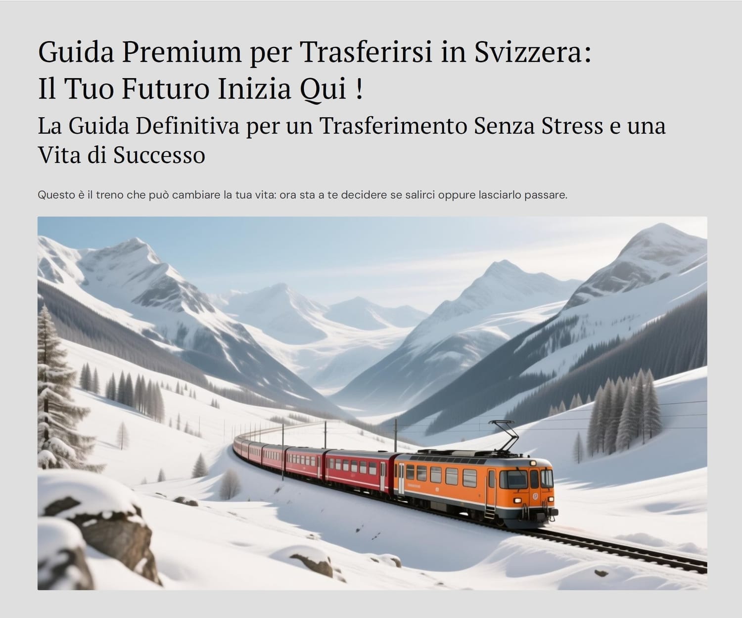 Con questa guida, avrai tutto il necessario per partire preparato, evitando stress e indecisioni, e potrai iniziare a costruire il tuo futuro in Svizzera con sicurezza.